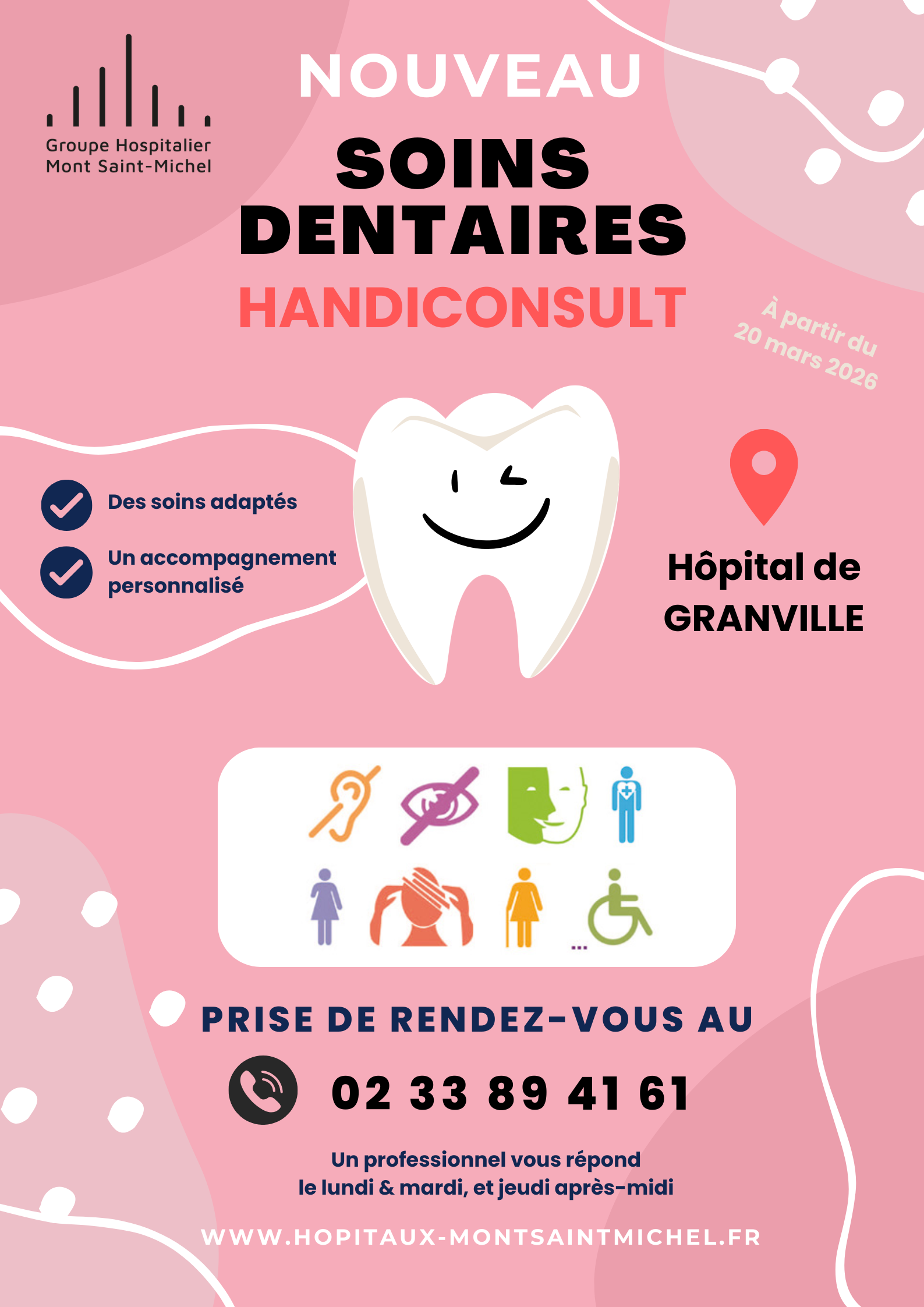 Elles auront lieu le vendredi matin aux consultations externes des Hôpitaux du Sud-Manche - site de Granville. Ces consultations seront assurées par le Dr François Corbeau.